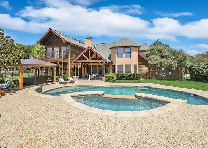 **Welcome to Rustic Cabin Mansion - Hot Tub Gym Cinema Pool, a serene retreat just 70 km from the bustling city of Dallas. Nestled in nature, this idyllic getaway combines rustic charm with modern sophistication, offering a perfect escape for families and friends seeking both relaxation and adventure.**